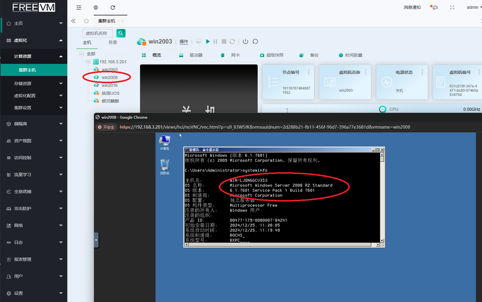 通过FreeVM在海光Hygon CPU服务器运行WindowsServer2008/2012/2016