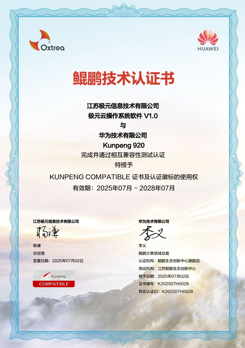 FreeVM-极元云操作系统获鲲鹏技术认证