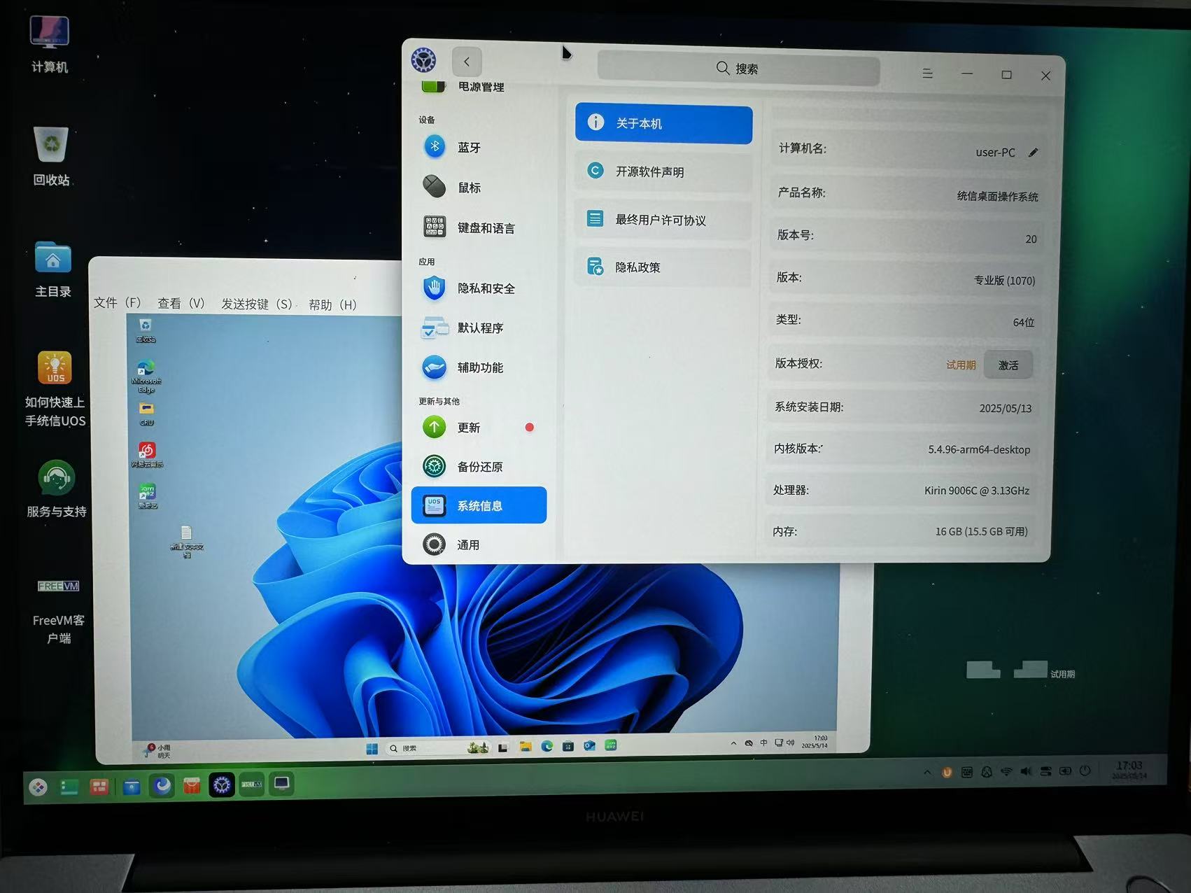 FreeVM云桌面支持在ARM架构的信创终端运行windows