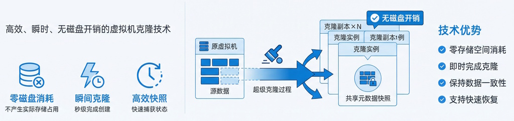 超级克隆:支持秒级虚拟机克隆,内置虚拟机备份
